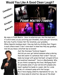 Frank Mastro Promo Comedy & Singing Impressions from, "One Man, Many Voices Show."